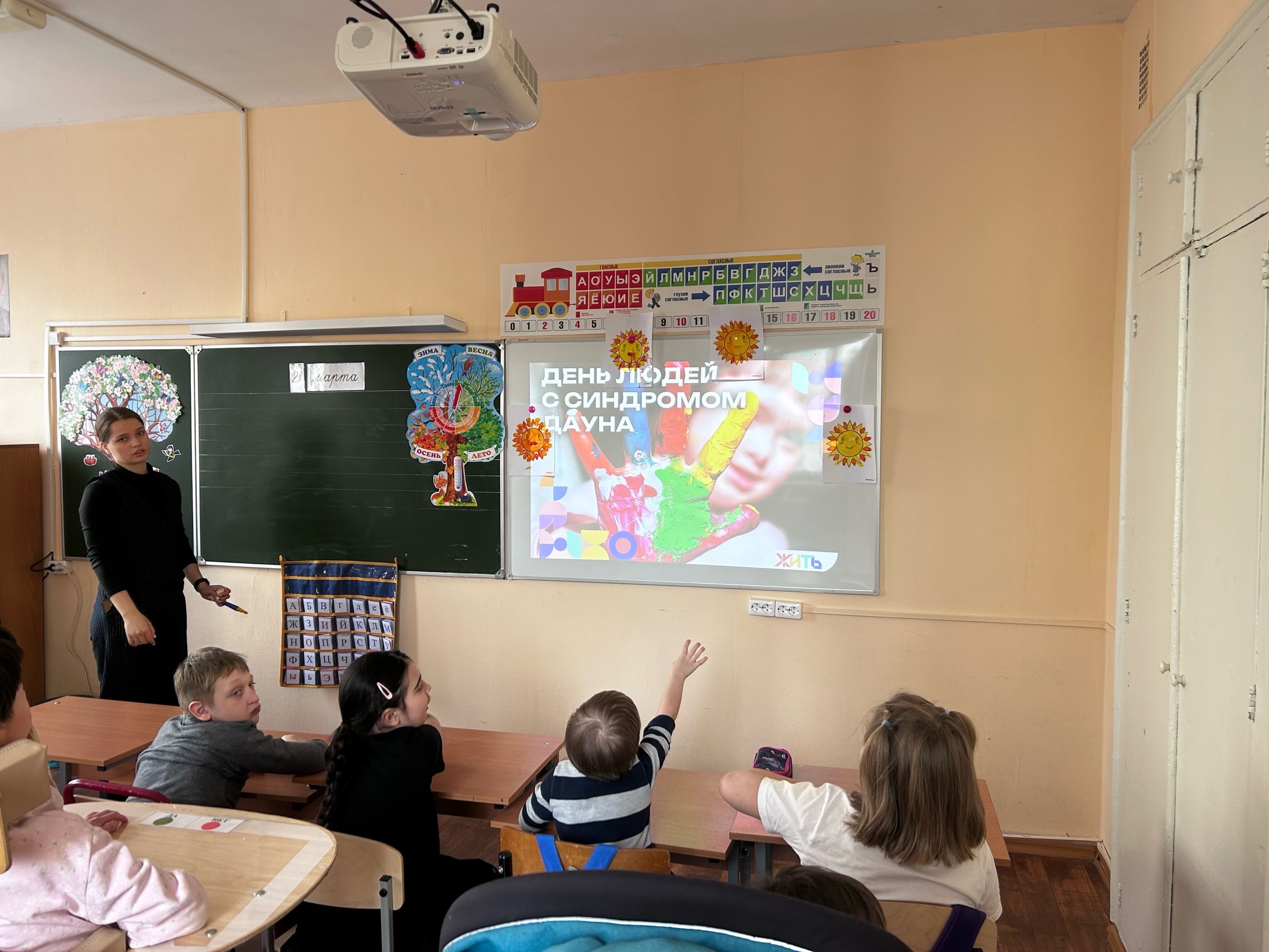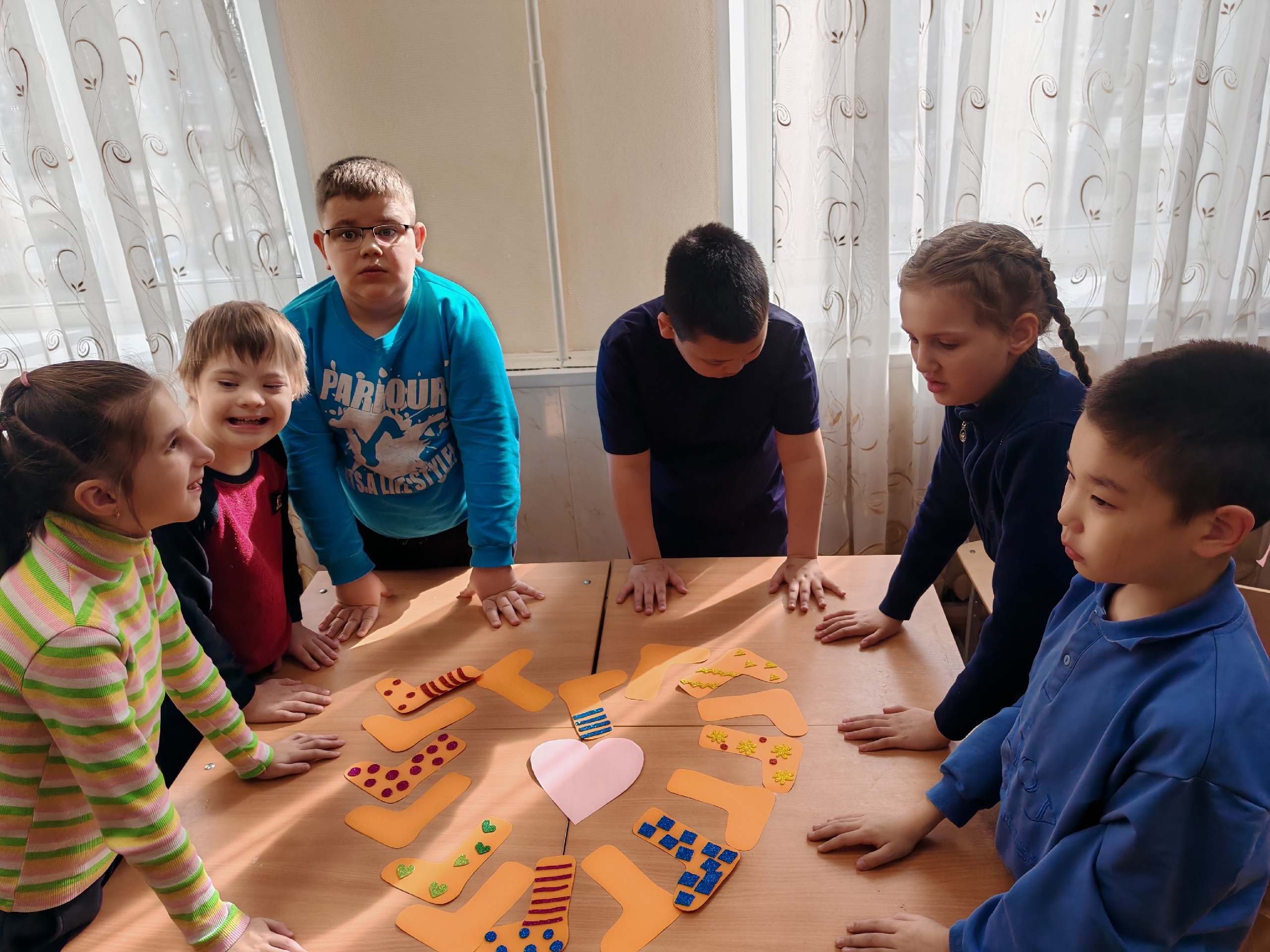 Младшеклассники смастерили огромное солнце, придав лучам форму собственных ладоней; приняли участие во флешмобе «Много носков», суть которого заключается в привлечении к себе дополнительного внимания при помощи разноцветных носков с узорами, чтобы понять, как ежедневно чувствуют себя люди с синдромом Дауна на публике.